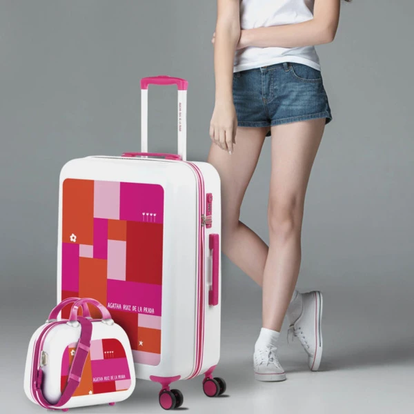 Set de maletas trolleys de la marca AGATHA RUIZ DE LA PRADA tamaños 50/60/70 realizadas con ABS/POlicarbonato, un material ligero y a la vez resistente.