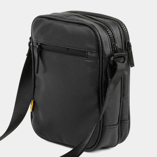 Bolso bandolera con asa larga regulable. con 2 departamentos con cierre de cremallera. Con departamento acolchado interior para IPAD. Bolsillo trasero e interior con cierre de cremallera. Material: Piel sintética. Interior: Forro con logo de la marca y etiqueta interior representativa de la marca. A destacar el cursor metálico negro, el logo metal al tono y las cremalleras inyectadas..