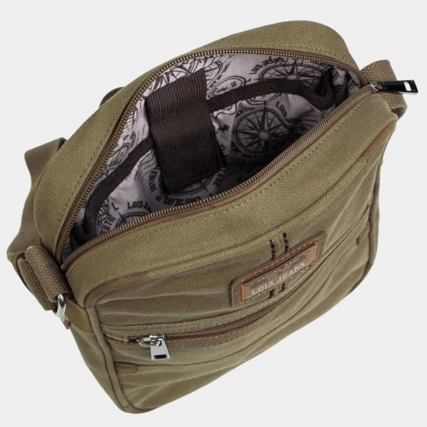 Bandolera de la marca LOIS, para IPAD. Contiene un porta Ipad con cierre de seguridad de velcro y un bolsillo extra con cremallera interior. También observamos un bolsillo delantero y otro trasero con cremallera.