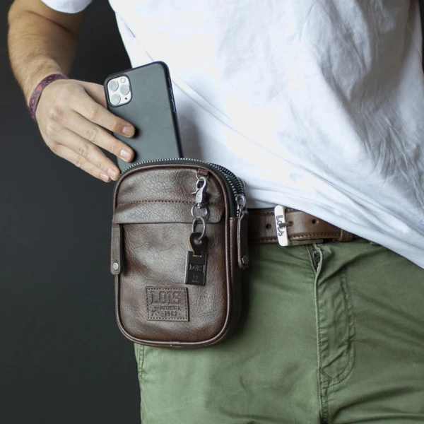 Bolso bandolera, riñonera, porta móvil. 3 posibilidades en 1. Bandolera ajustable pequeña para hombre de la firma Lois.