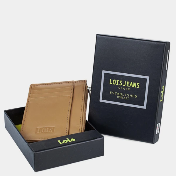 Cartera Unisex de Cuero de la firma Lois disponible en 6 colores. Diseño juvenil. Lois vuelve, tan rebelde y tan auténtica como siempre. Lois es una marca internacional reconocida por su calidad, diseño, experiencia y prestigio, desde 1962. La marca española por excelencia con alma denim. Cada diseño es estudiado y cuidado para satisfacer las necesidades de un uso cotitidano, todo ello sin perder de vista las tendencias en el mundo de la moda y el sello inconfundible de la marca. Características principales: Muy útil para monedas, llaves, billetes, tarjetas de crédito, documentación, etc. Unisex, para cualquier edad. Por su pequeño tamaño es ideal para uso diario. Muy práctica. Dimensiones y Peso: Cartera: 8,3 x 11,3 x 1 cm. Caja para regalo: 12 x 9 x 3 cm. Peso: 90 gr. Material: Piel genuina cuero. Cierre: Con cremallera. Cremallera: Deslizamiento muy suave. Compartimento exterior con cremallera. Logotipo de Lois troquelado en relieve en el exterior. Anilla para las