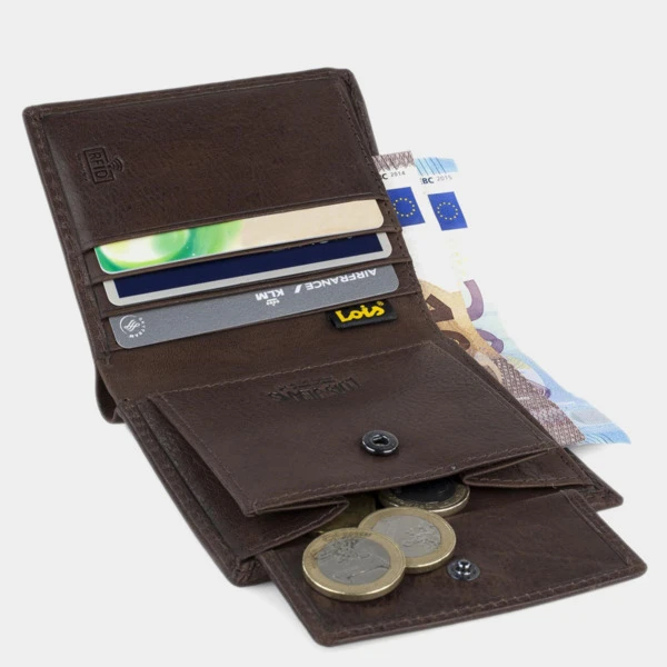 Billetero/Monedero Lois fabricado en Piel, lleva consigo un compartimento abierto para billetes. Monedero interior con cremallera. Compartimentos múltiples con capacidad para ocho tarjetas y documentación. En esta colección hemos incorporado la tecnología RFID PROTECTION, impide el acceso por radiofrecuencia a nuestras tarjetas.Tu dinero, aparte de estar elegantemente guardado, estará seguro.