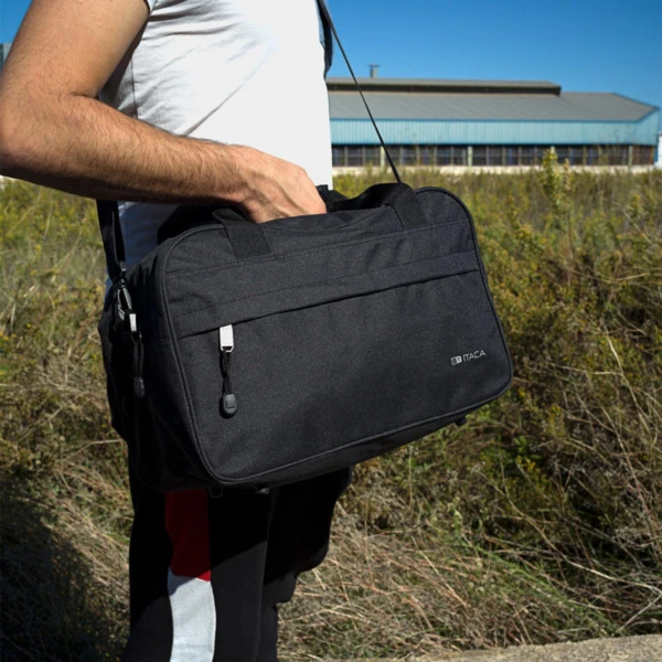 Bolsa de viaje y deporte de la marca ITACA. La firma ITACA es número uno en artículos de viaje por su relación insuperable calidad/precio. Todos nuestros artículos nacen de un proceso minucioso de planificación y búsqueda de soluciones planteadas por los clientes, por ese motivo no el éxito no se debe al azar. Medidas: 40x25x25 cm. Peso: 0,3 kg. Material: Poliéster.