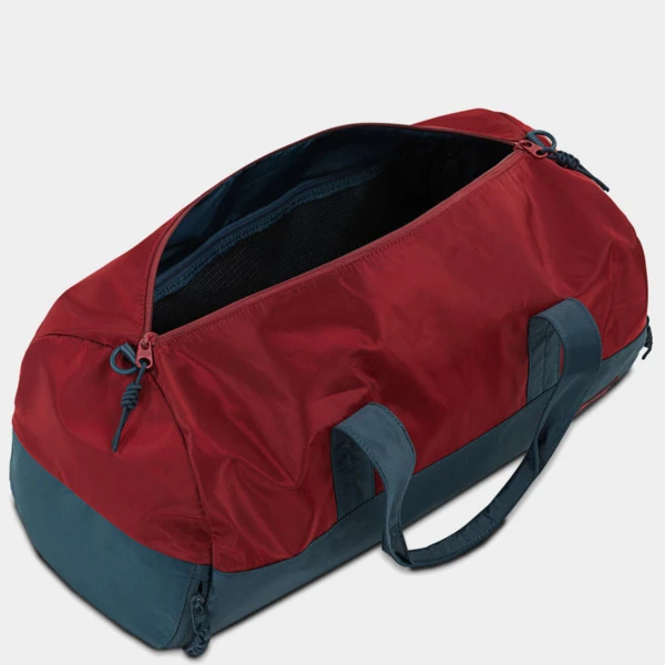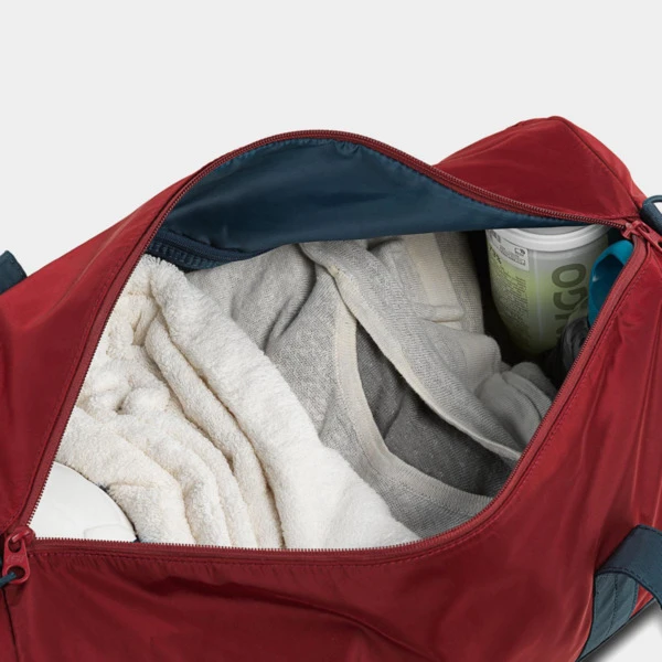 Bolsa de deporte con asa larga regulable adicional. Tiene dos bolsillos laterales con cierre cremallera, uno de ellos para poder meter los zapatos o la ropa sucia. En su interior tiene dos bolsillos interiores con cierre cremallera, uno de ellos de malla.