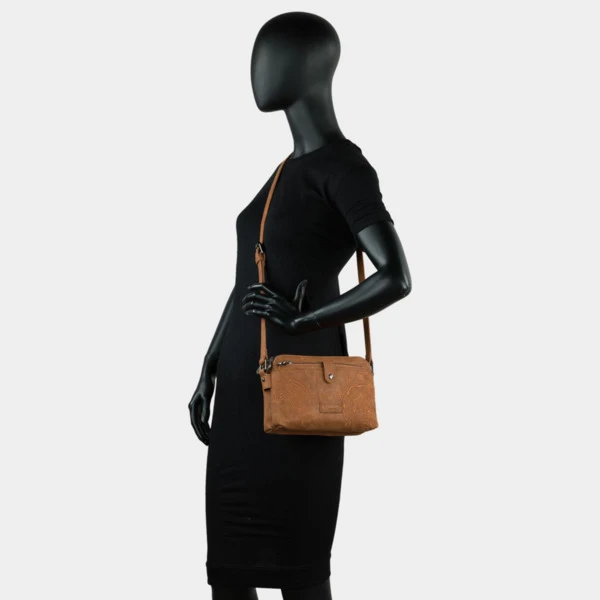 Caracteríticas principales:Bolso bandolera con tres departamentos, 2 con cierre de cremallera. Con cartera frontal extraíble.