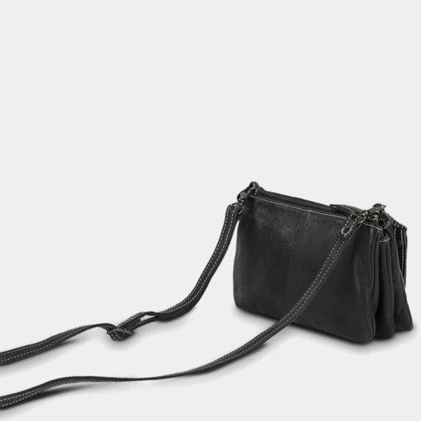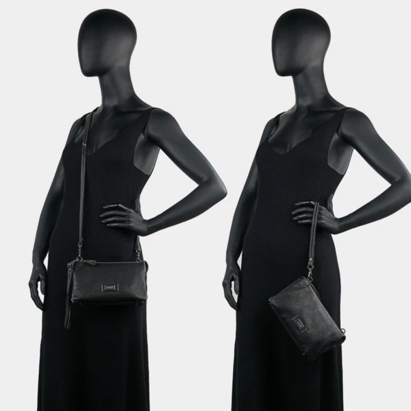 Bolso bandolera con 2 asas intercambiables, una larga y otra de mano. Con múltiples departamentos (5) interiores. Con 3 tarjeteros interiores con capacidad hasta 8 tarjetas. Material exterior: Piel genuina Interior: Sin forro, con diferentes serigrafias interiores en cada artículo. A destacar la textura de la piel, el pespunte a contraste, el logo metálico y los interiores con diferentes serigrafías.