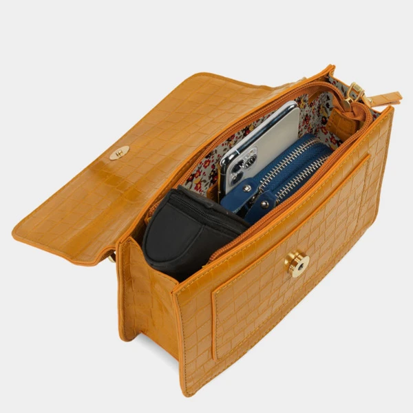 Exterior: Bolso bandolera con 2 asas intercambiables, una de hombro y otra larga regulable. Abertura principal con cierre cremallera y solapa, esto garantiza una mayor seguridad.