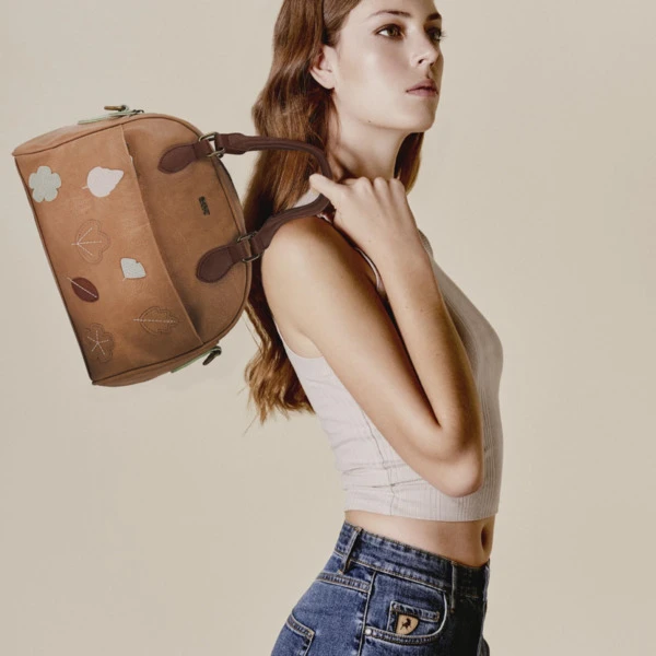 Esta colección se distingue de las demás por la discreción del logo, las hojas cosidas, las aguas que simula el material y el bicolor de las bandoleras.