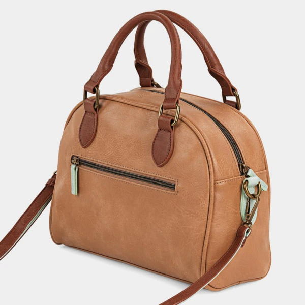 Exterior: Bolso de mano con bolsillo delantero y trasero con cierre cremallera. Tiene una bandolera adicional ajustable bicolor.