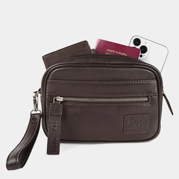Fabricado en piel, al tratarse de un material resistente y ligero, hace fácil su uso cotidiano.