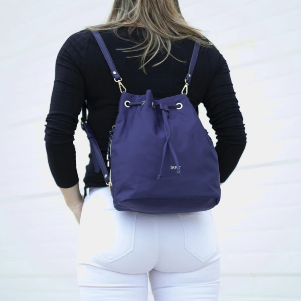 Bolso / Mochila con bandolera desmontable y ajustable para mayor versatilidad, puede ser usado como bandolera y bolso. En los laterales incluye dos departamentos con cremallera.