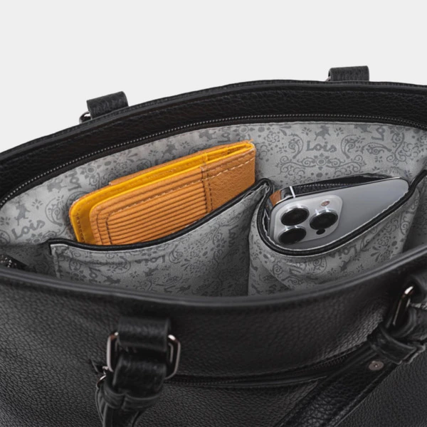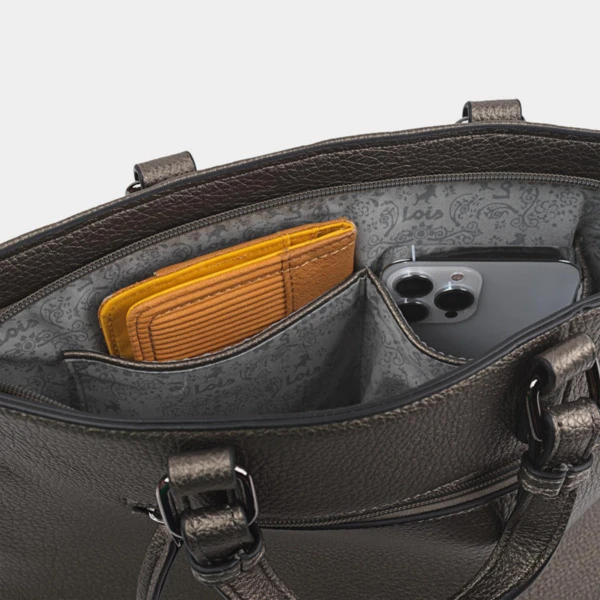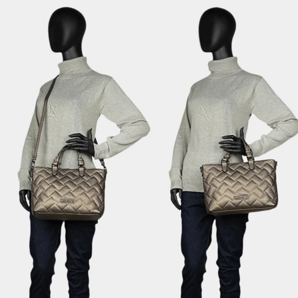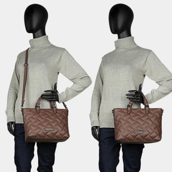 Bolsos Grandes Bolsos de Mujer. Bolso de mano con bandolera adicional (larga y regulable). Bolsillo trasero e interior con cierre de cremallera. Bolso Mujer Grande. Bolsillos interiores organizadores. Material exterior: Piel sintética la cual cumple con los standars Eco-friendly. Bolsos de Mujer. Forro estampado y etiqueta interior representativa de la marca. Bolso Mano Mujer. A destacar el grabado del material , la textura y el logo metálico. Medidas: 31x23x11 cm. Peso: 0,6 kg. Material: Polipiel.