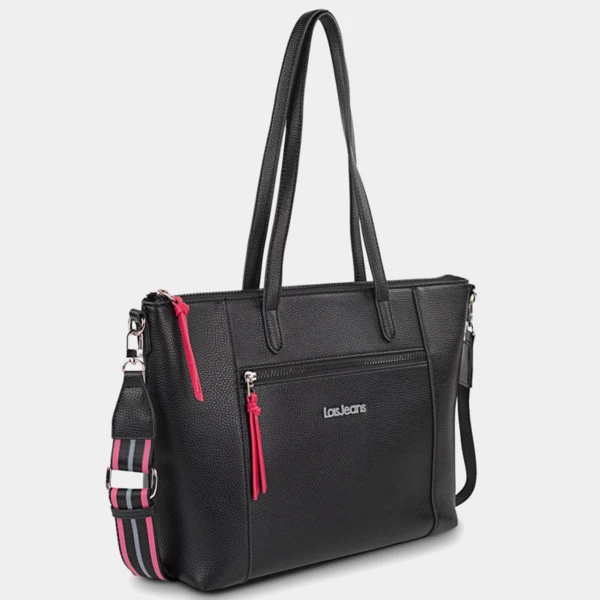 Bolso de hombro para mujer de la marca LOIS con asa larga adicional, diseñado en España. Bolsos Grandes Bolsos de Mujer. Exterior: Piel sintética la cual cumple con los standars Eco-friendly. Interior: Forro al tono y etiqueta interior representativa de la marca. Bolsos de Mujer. A destacar el logo al tono , las cremalleras inyectadas , el toque de color en el cursor y la cinta decorada. Bolso Mano Mujer. En el interior hemos optimizado el espacio al máximo para llevar todo lo necesario sin perder detalles. Medidas: 38,5×26,5×12 cm. Peso: 0,69 kg. Material: Polipiel.