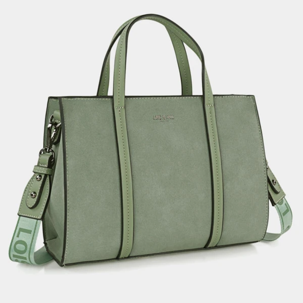 Bolso de mano con asa larga adicional. Bolsillo trasero e interior con cierre de cremallera. Bolsillos interiores organizadores. A destacar el material simil ante, el grabado del logo, la cinta personalizada y los acabados.