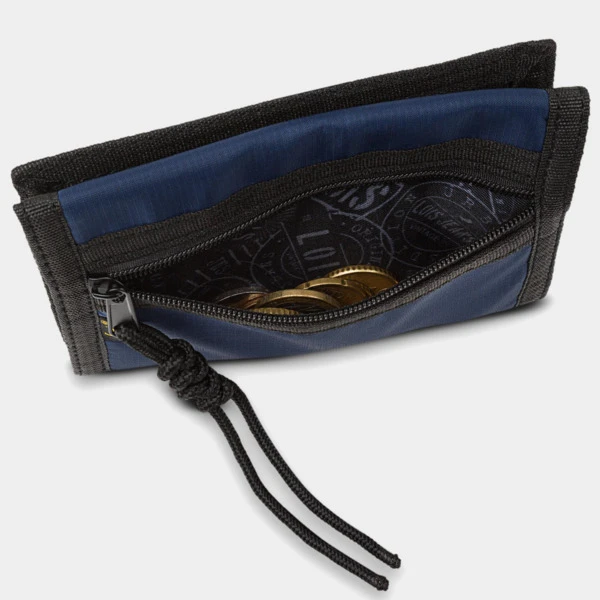 Compartimentos múltiples para tarjetas, monedas y documentación.