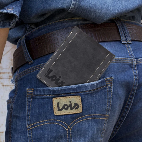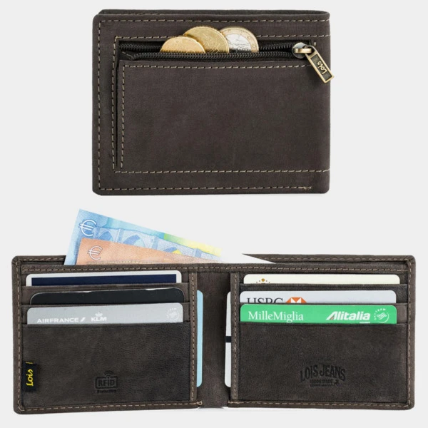 Cartera para hombre horizontal de cuero piel genuina. Monedero, billetero y tarjetero de la firma Lois