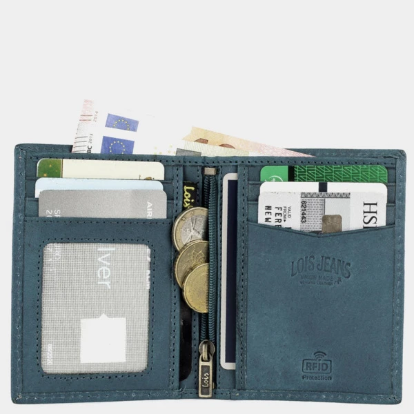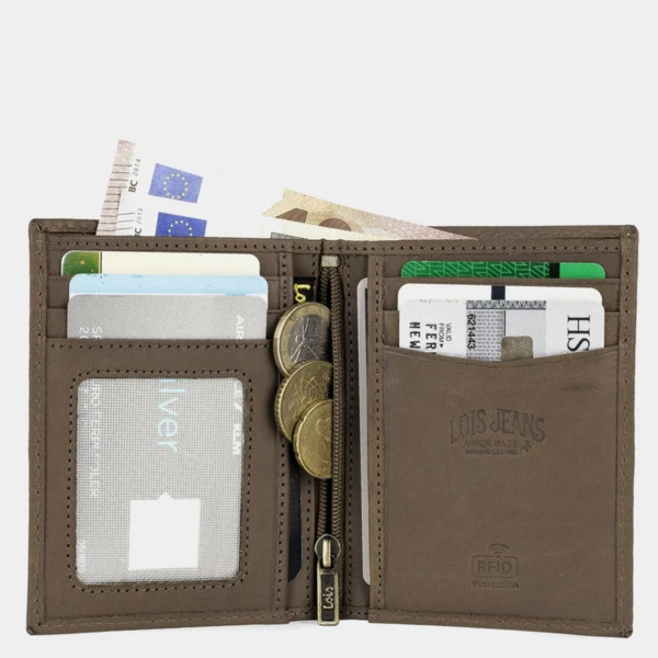 Cartera para hombre vertical de cuero piel genuina. Monedero, billetero y tarjetero de la firma Lois