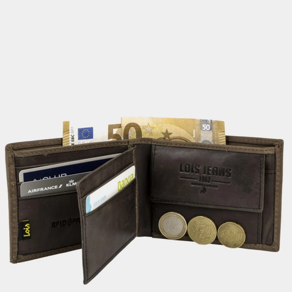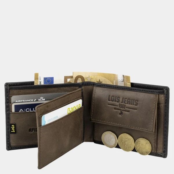 Cartera juvenil de chico de la firma Lois de piel genuina. Monedero, billetero, tarjetero.