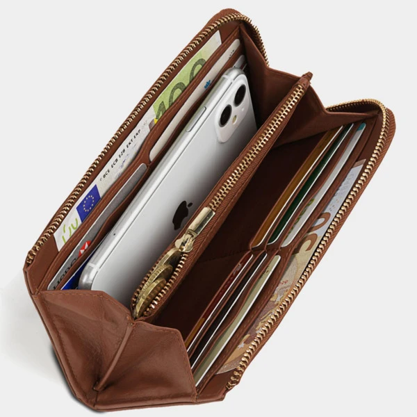 Cartera con monedero interior con cremallera y capacidad para 12 tarjetas.