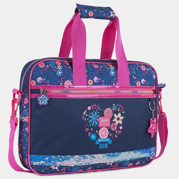 Maletin extraescolar de la marca SKPAT. Con doble asa y un bandolera ajustable y desmontable. Cierre cremallera. Compartimento delante con cierre cremallera. Medidas: 39 x 29 x 6 cm. Material: Poliester.