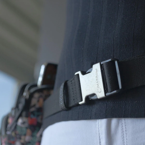 Cinturón de cinta de la marca Cimarrón con cierre especial y se puede acoplar al monedero de esta colección.