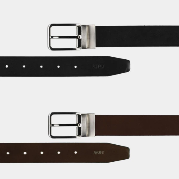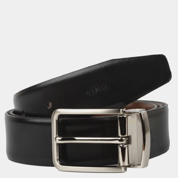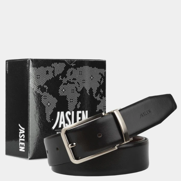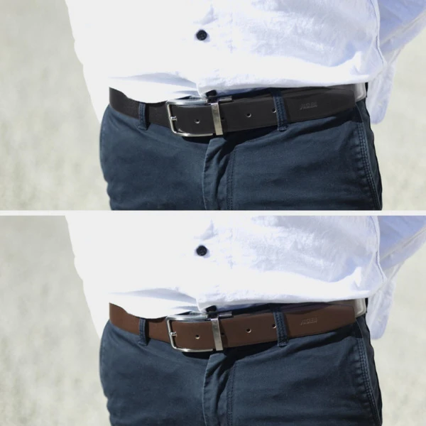 Cinturón de hombre de piel genuina cuero de la firma Jaslen. Diseño exclusivo. La peculiaridad de este cinturón es que es reversible. Tienes 2 en 1, en color negro y marrón.