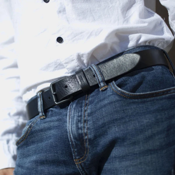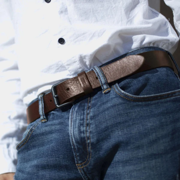 Cinturón de hombre de piel genuina cuero de la firma Jaslen. Diseño exclusivo.