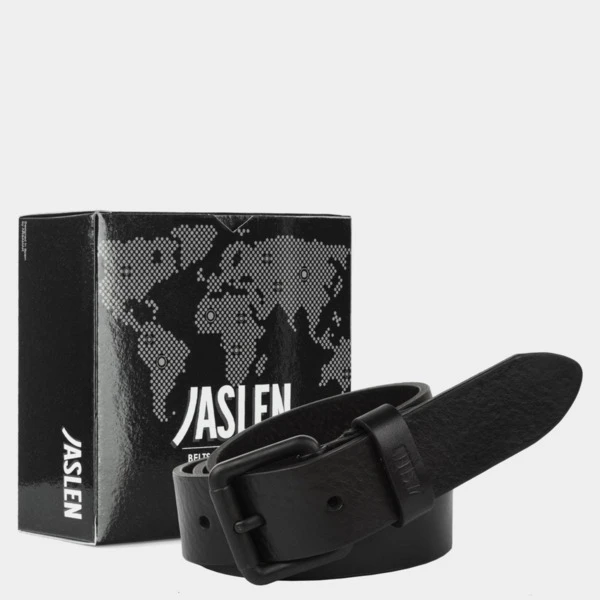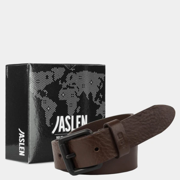 Cinturón para hombre de piel genuina de la firma JASLEN. Hebilla Metálica. Logo Grabado en Relieve