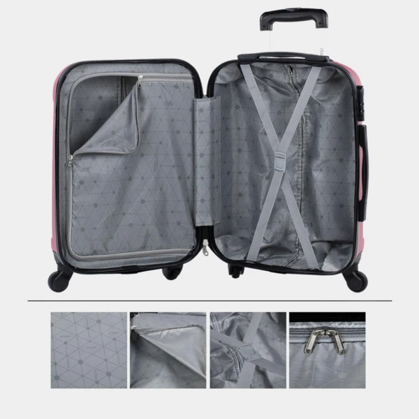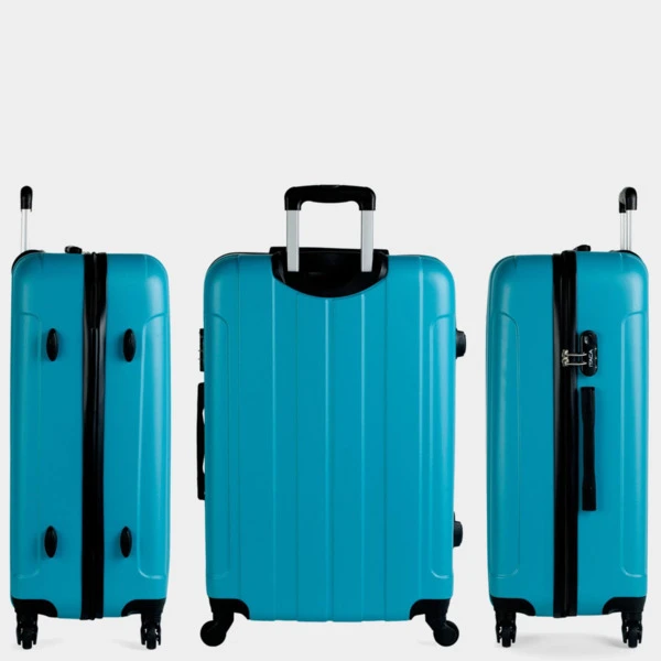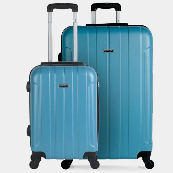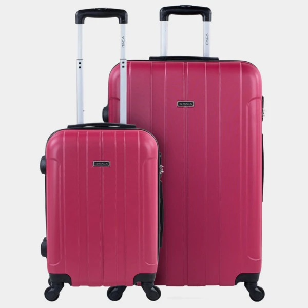 ITACA lanza su nueva colección de maletas. Set de neceser + 3 maletas tamaño 50/60/70 realizadas con ABS, un material ligero y a la vez resistente. Otra ventaja es que permite mayor maniobrabilidad con sus 4 ruedas giratorias 360° multidirección de suave rodamiento y su trolley telescópico con seguro hacen que su manejo sea más cómodo. Dispone de una cremallera con doble cursor y cerradura con combinación LOCK para una mayor seguridad. En su interior, contemplamos el forro personalizado de la marca, con separación central. Contiene correas elásticas interiores que permiten la sujeción del contenido. Cabina (Cumple la normativa de equipaje de mano de EasyJet, Iberia, Ryanair, etc.)