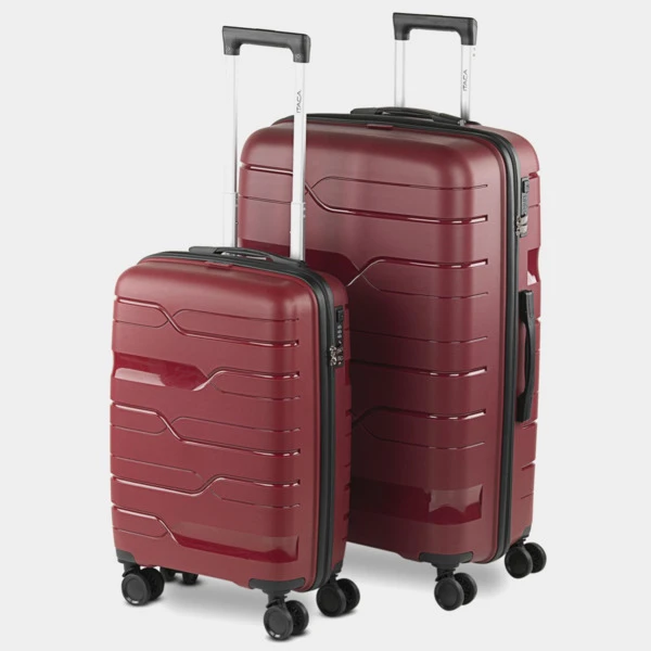 Juego de 2 maletas de viaje con ruedas de la firma ITACA fabricadas con Polipropileno PP. Hemos utilizado Polipropileno de alta tecnología. Este material es ultra resistente y súper ligero, el mejor material sintético para la fabricación de maletas. Alta resistencia y durabilidad. Combinación ideal para viajes largos. Son las maletas más recientes y de mayor calidad. la evolución de la marca ITACA continua buscando la mejor calidad a el mejor precio. Este set de 2 maletas te ofrece una combinación ideal para todo tipo de viajes, de fin de semana, cortos y largos. Para homologar internacionalmente, hemos incorporado la cerradura TSA, de esta forma no tendrás problemas en ninguna aduana de mundo. Características principales: Dimensiones: Cabina (Cumple la normativa de equipaje de mano de EasyJet, Iberia, Ryanair, etc.). Total: 39.5 x 55 x 21 cm. Volumen: 39 L. Peso: 3.20 kg. Grande XL: Total: 55 x 77.5 x 33 cm. Volumen: 110 L. Peso: 4,60 kg. Exterior: Material: