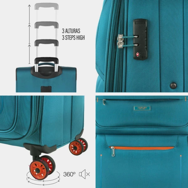 Set de maletas trolleys de la marca JASLEN tamaños 50/60/70 realizadas con Poliéster-EVA, un material ligero y a la vez resistente.