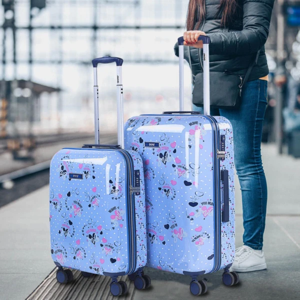 Set de dos maletas de viaje tamaño 50/60 realizadas con ABS/Policarbonato, un material ligero y a la vez muy resistente que permite la impresión de cualquier diseño, consiguiendo un acabado brillante precioso, este detalle da un aspecto a la maleta que no te deja indiferente.