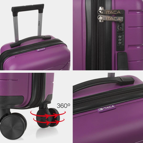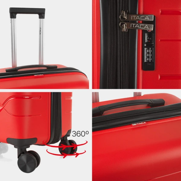 Maleta Mediana para Viaje Rígida con Ruedas Dobles fabricada en Polipropileno de alta resistencia de la marca ITACA. Hemos utilizado Polipropileno de última generación, nuestro departamento de I+D+I ha optado por este material por sus cualidades, es ultra resistente y súper ligero, se trata del mejor material sintético para la fabricación de maletas. Alta resistencia y durabilidad. Combinación ideal para viajes largos en los que las maletas sufren todo tipo de percances e impactos. Son las maletas más recientes y de mayor calidad que ha fabricado la marca. Este producto es el resultado de la evolución de la marca ITACA en su continua busqueda entre la mejor calidad a el mejor precio. Esta maleta te ofrece una solución ideal para todo tipo de viajes, de fin de semana, cortos y largos. Para conseguir la homologación internacional, hemos incorporado la cerradura TSA, de esta forma no tendrás problemas en ninguna aduana de mundo. Las maletas han sido pensadas para dar solución a toda