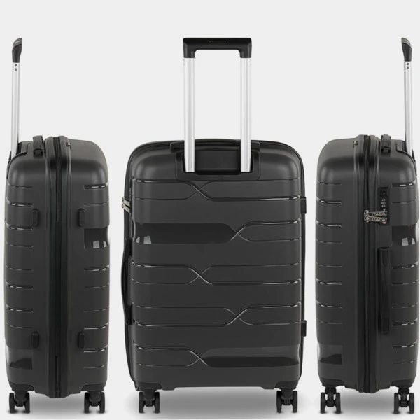 Maleta de viaje con 4 ruedas de la firma ITACA fabricada con Polipropileno PP. Hemos utilizado Polipropileno de última generación. Este material es ultra resistente y súper ligero, el mejor material sintético para la fabricación de maletas. Alta resistencia y durabilidad. Combinación ideal para viajes largos. Son las maletas más recientes y de mayor calidad fabricadas por ITACA. la evolución de la marca ITACA continua buscando la mejor calidad a el mejor precio. Esta maleta te ofrece una solución ideal para todo tipo de viajes, de fin de semana, cortos y largos. Para homologar de forma internacional la maleta, hemos incorporado la cerradura TSA, de esta forma no tendrás problemas en ninguna aduana de mundo. Características principales: Dimensiones: Mediana: Total: 45 x 67.5 x 30 cm. Volumen: 77 L. Peso: 4 kg. Exterior: Material: Polipropileno PP texturizado antirayaduras y antiabolladuras. Candado de combinación integrado TSA de 3 dígitos para mayor seguridad y homo
