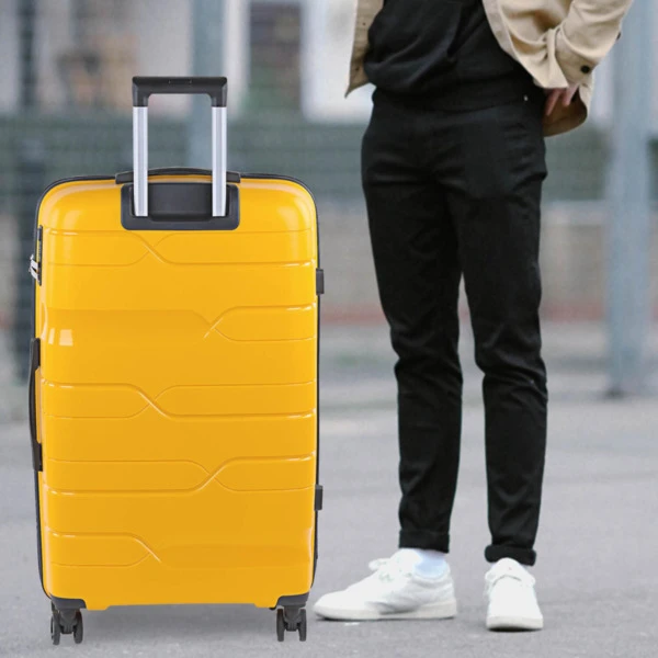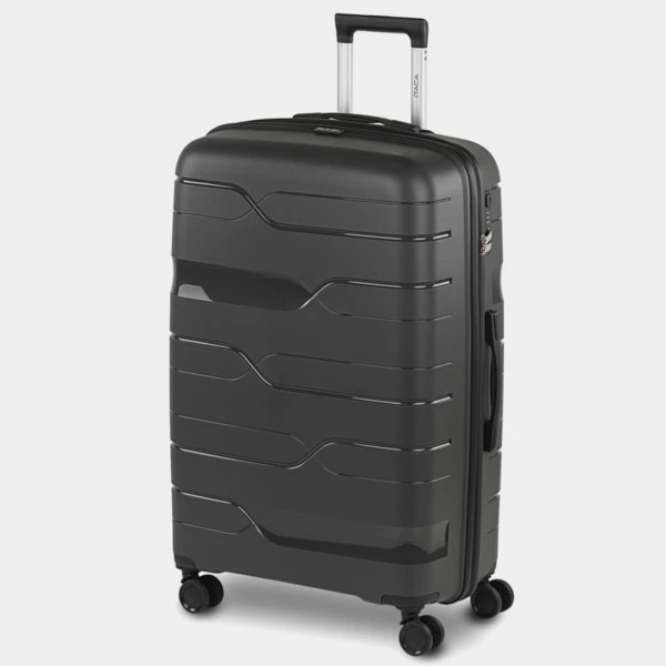 Maleta de viaje grande con ruedas de la firma ITACA fabricadas con Polipropileno PP. Hemos utilizado Polipropileno de alta tecnología. Este material es ultra resistente y súper ligero, el mejor material sintético para la fabricación de maletas. Alta resistencia y durabilidad. Combinación ideal para viajes largos. Son las maletas más recientes y de mayor calidad. la evolución de la marca ITACA continua buscando la mejor calidad a el mejor precio. Esta maleta te ofrece una combinación ideal para todo tipo de viajes, de fin de semana, cortos y largos. Para homologar internacionalmente, hemos incorporado la cerradura TSA, de esta forma no tendrás problemas en ninguna aduana de mundo. Características principales: Dimensiones: Grande XL: Total: 55 x 77.5 x 33 cm. Volumen: 110 L. Peso: 4,60 kg. Exterior: Material: Polipropileno PP texturizado antirayaduras y antiabolladuras. Candado de combinación integrado TSA de 3 dígitos para mayor seguridad y homologación internacional