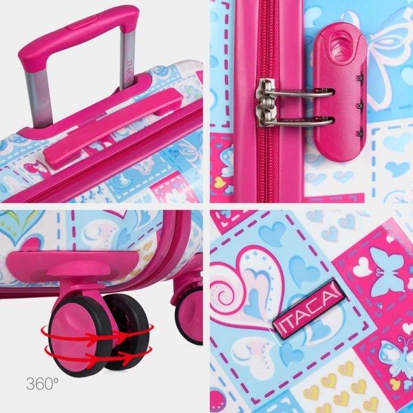 Maleta de mano infantil cabina pequeña de policarbonato estampado de la firma ITACA. Equipaje de mano.