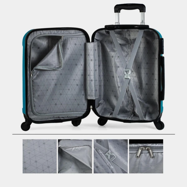 ITACA lanza su nueva colección de maletas. Maleta cabina tamaño 50 realizada con ABS, un material ligero y a la vez resistente. Otra ventaja es que permite mayor maniobrabilidad con sus 4 ruedas giratorias 360° multidirección de suave rodamiento y su trolley telescópico con seguro hacen que su manejo sea más cómodo. Dispone de una cremallera con doble cursor y cerradura con combinación LOCK para una mayor seguridad. En su interior, contemplamos el forro personalizado de la marca, acorde al diseño exterior , con separación central. Contiene correas elásticas interiores que permiten la sujeción del contenido. La maleta pequeña, que es una CABINA LOW COST, mide 37 x 55 x 20 cm. y pesa 2,60 kg.