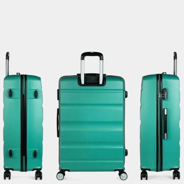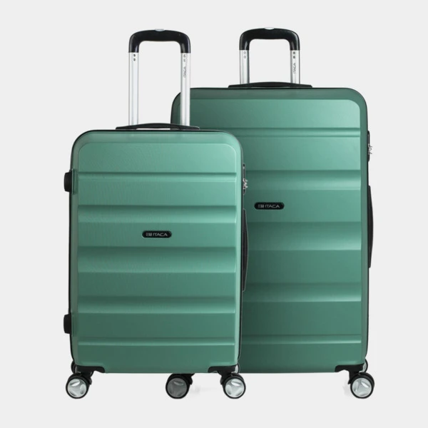 Set de tres maletas trolleys tamaño 60/70 realizadas con ABS, un material ligero y a la vez resistente. Desde sus inicios la marca ITACA esta a la vanguardia del diseño para artículos de viaje. Siempre en continua e incesante evolución, el equipo de diseño trabaja codo con codo con el departamento de I+D+I para ofrecer algo más que maletas y artículos de viaje. Otra ventaja es que permite mayor maniobrabilidad son sus 4 ruedas dobles giratorias 360° multidirección de suave rodamiento. Su trolley telescópico con seguro hacen que su manejo sea más cómodo. Dispone de una cremallera con doble cursor y cerradura con combinación LOCK para una mayor seguridad. En su interior, el forro o linning está personalizado con la marca, acorde al diseño exterior, con separación central y bolsillo neceser para los objetos más pequeños. Contiene correas elásticas interiores que permiten la sujeción del contenido. Especificaciones: Medidas mediana: 44x67x26 cm. Peso: 3,35 kg. Capacidad: 65 L a