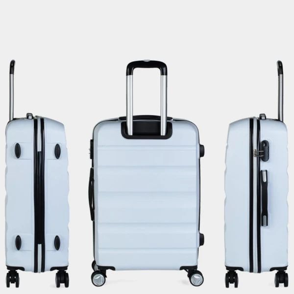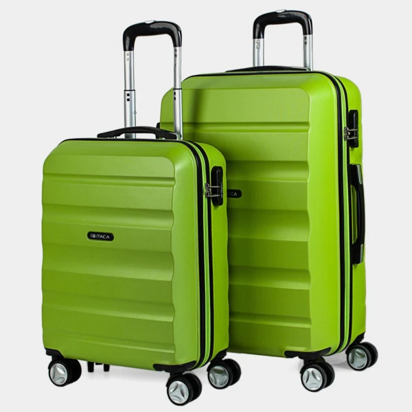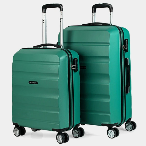 Set de dos maletas trolleys tamaño 50/60 realizadas con ABS, un material ligero y a la vez resistente. Otra ventaja es que permite mayor maniobrabilidad con sus 4 ruedas dobles giratorias 360° multidirección de suave rodamiento y su trolley telescópico con seguro hacen que su manejo sea más cómodo. Dispone de una cremallera con doble cursor y cerradura con combinación LOCK para una mayor seguridad. En su interior, contemplamos el forro personalizado de la marca, acorde al diseño exterior , con separación central. Contiene correas elásticas interiores que permiten la sujeción del contenido.
