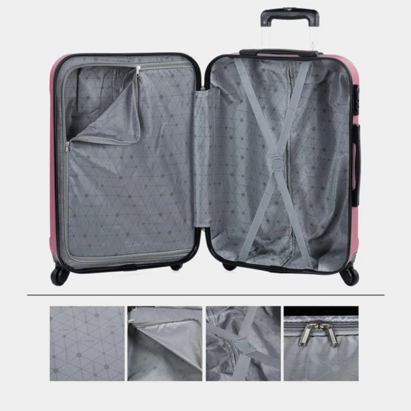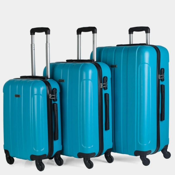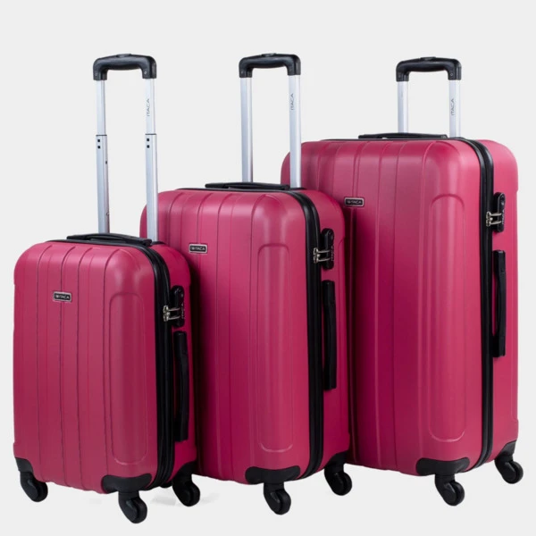 ITACA lanza su nueva colección de maletas. Set de tres maletas trolleys tamaño 50/60/70 realizadas con ABS, un material ligero y a la vez resistente. Otra ventaja es que permite mayor maniobrabilidad con sus 4 ruedas dobles giratorias 360° multidirección de suave rodamiento y su trolley telescópico con seguro hacen que su manejo sea más cómodo. Dispone de una cremallera con doble cursor y cerradura con combinación LOCK para una mayor seguridad. En su interior, contemplamos el forro personalizado de la marca, acorde al diseño exterior , con separación central. Contiene correas elásticas interiores que permiten la sujeción del contenido. La maleta pequeña, que es una CABINA LOW COST, mide 37 x 55 x 20 cm. y pesa 2,60 kg.