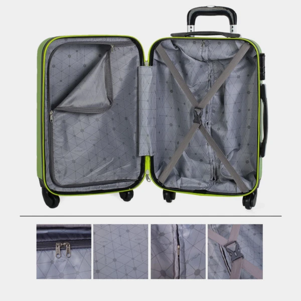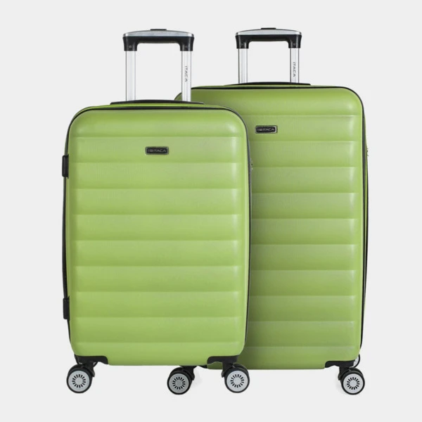 Juego de 2 maletas de viaje trolley de la firma ITACA. Todos los productos ITACA son un referente de calidad, seguridad y confianza. ITACA es una firma con mucha experiencia en el diseño y fabricación de productos de viaje. Un producto ITACA será siempre tu fiel compañero de viaje. Este set de 2 maletas te ofrece una combinación ideal para todo tipo de viajes, de fin de semana, cortos y largos. Las maletas ITACA están diseñadas para tu máximo confort en el viaje. Dimensiones Mediana Total: 65x42x26+5 cm. Extensible 5 cm. Cuerpo: 58x40x26+5 cm Volumen: 70 L Peso: 3,15 kg Grande XL Total: 75x49x30+5 cm. Extensible 5 cm. Cuerpo: 68x47x30+5 cm. Volumen: 100 L Peso: 4,00 kg Características principales Exterior Material: ABS texturizado antirayaduras. Cierre: Candado de combinación integrado de 3 dígitos para mayor seguridad. Cremallera: De doble cursor con orificios para candado. Deslizamiento muy suave. Asas: Asas retráctiles superior y lateral. Protectores de apoy