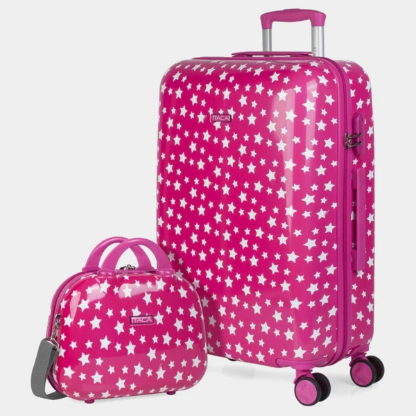 Maleta para viaje rígida de diseño juvenil tamaño mediana con trolley 4 ruedas dobles para facilitar su transporte y manejo. Neceser a juego. Diseño original, único y exclusivo de la marca ITACA. Set de maletas de viaje con ruedas. Alta resistencia y durabilidad, este producto es el resultado de la evolución de la marca ITACA en su continua búsqueda de la mejor calidad al mejor precio. Maletas de viaje mediana. El interior está forrado con Nylon personalizado acorde al diseño de la maleta. Para la organización del equipaje cuenta con correas, bolsillos y cremalleras para asegurar la sujeción y el orden. Perfectas para limitaciones 23 kg facturada. Las 4 ruedas dobles aseguran un transporte fácil y manejable, el asa extensible adapta la maleta a cualquier altura de usuario y el cierre TSA proporciona la tranquilidad de pasar por cualquier aduana sin tener que forzar y romper la apertura por parte de las autoridades. Medidas: 44x65x25 cm. Peso: 4,23 kg. Material: ABS/Policarbonato.