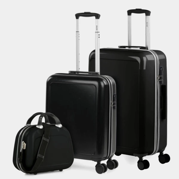 Juego completo set de 2 maletas trolley mas neceser de la firma ITACA. 4 ruedas giratorias y mango telescópico. Forro interior. Compartimento separador con cremallera y bandas elásticas ajustables. Varios compartimentos. Set de maletas de viaje con ruedas. El Policarbonato es un material muy resistente y ligero, con un acabado brillante precioso, permite cualquier estampado dando como resultado maletas ligeras, juveniles prácticas, funcionales y versátiles, ideal para regalo para niños, niña, comuniones, cumpleaños… Maletas de viaje cabina, mediana y grande. El interior está forrado con Nylon personalizado acorde al diseño de la maleta. Para la organización del equipaje cuenta con correas, bolsillos y cremalleras para asegurar la sujeción y el orden. Perfectas para limitaciones 23 kg facturada y 10 kg cabina. Las 4 ruedas dobles aseguran un transporte fácil y manejable, el asa extensible adapta la maleta a cualquier altura de usuario y el cierre TSA proporciona la tranquilidad de pa