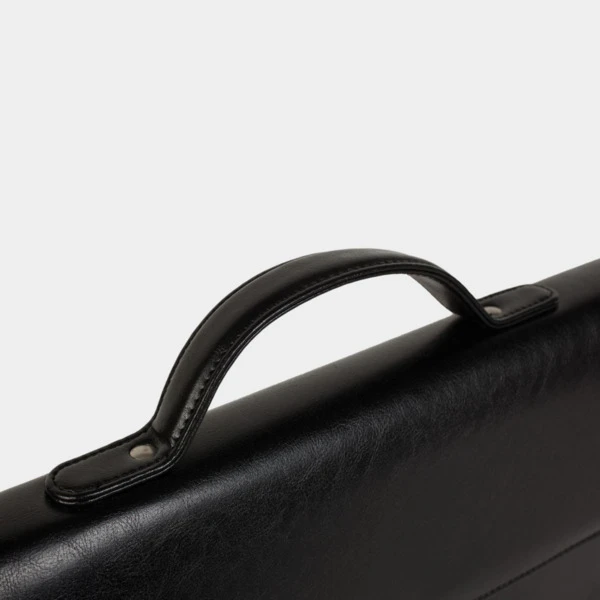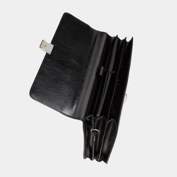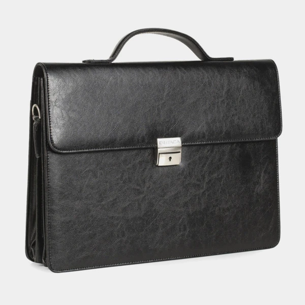 Maletin ejecutivo de la marca Itaca. Con solapa y asa y bandolera adicional, ajustable. Cierre con brosche y dispone de una cerradura con llave.En el interior dispone de tres compartimentos abiertos más un compartimento con cremallera y uno acolchado para portatil y cierre con velcro. Dispone de compartimentos multiples para boligrafos, móvil y 3 tarjetas o documentaciones. Medidas: 40,5 x 31 x 9 cm. Material: Polipiel