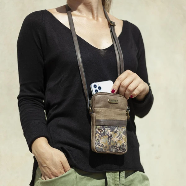 Minibolso para móvil SKPAT . Modelo con bandolera regulable para una mayor comodidad.
