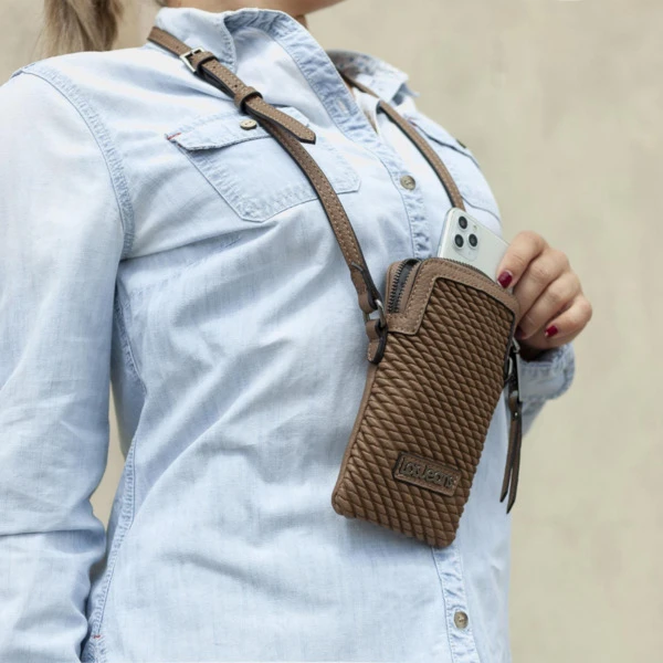 Mini bolso para móvil Lois . Modelo con bandolera regulable para una mayor comodidad.