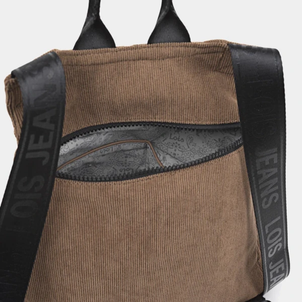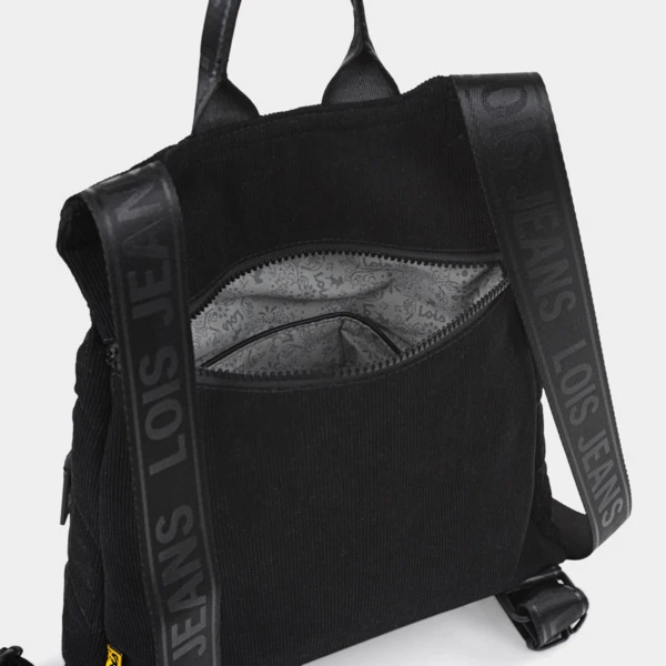 Mochila Bolso Mujer Funcional. Mochila con sistema anti-robo. Marca LOIS. Mochila Mujer LOIS. Mochila Viaje Mujer y uso diario. Bolsillos laterales con cierre de cremallera. Bolsillo interior con cierre de cremallera. Bolsillos interiores organizadores. Tirantes ajustables y asa superior para colgar. Bolso Mochila Mujer. Material exterior: Micro-pana combinado con detalles con piel sintética. Interior: Forro estampado y etiqueta interior representativa de la marca. Mochilas Antirrobo Mujer. A destacar el material acolchado , las cremalleras inyectadas , los metales en color negro mate y la cinta personalizada al tono. Medidas: 30x34x8 cm. Peso: 0,63 kg. Material: Poliéster/Polipiel.