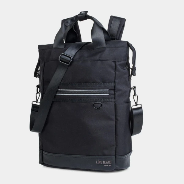 Mochila con capacidad portadocumentos 15″ de la marca LOIS con cierre cremallera y dos asas ergonómicas ajustables.Tiene varias posiciones, puede ser de mnao, bandolera o mochila. Compartimento delantero con cremallera. Forro estampado con el logo de la marca y compartimento interior con cremallera.