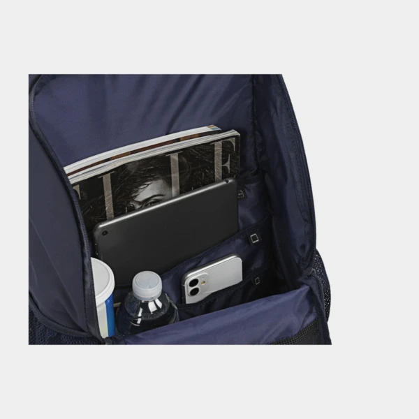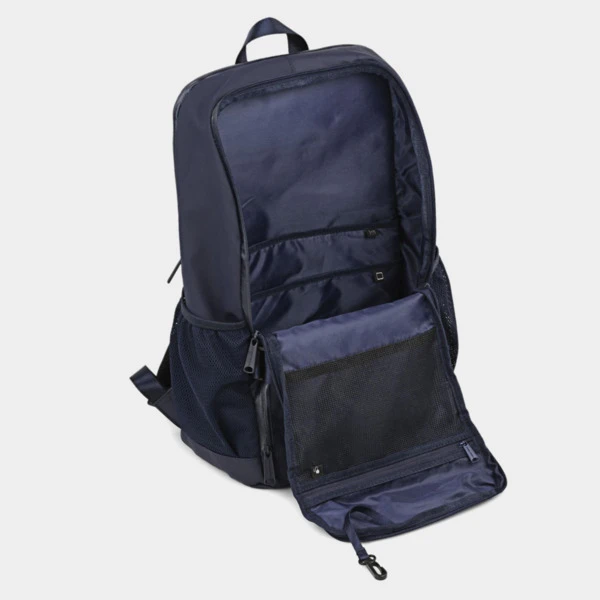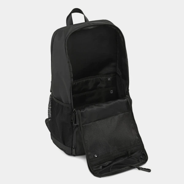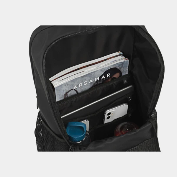 Exterior: Mochila con dos compartimentos con cierre de cremallera, uno acolchado apto para portátil de 15,6″ pulgadas. Ideal para llevarla durante horas sin que te moleste gracias a su espalda acolchada y transpirable y sus tirantes regulables y acolchados que tienen incorporados una cinta de unión para repartir mejor el peso. Tiene dos bolsillos laterales de malla y un bolsillo frontal con cierre cremallera para zapatos o ropa sucia. Tiene una gran obertura principal, la cual, no permite acceder a todos los bolsillos interiores sin ninguna complicación.