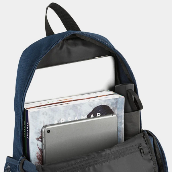 Exterior: Mochila con bolsillo frontal y cierre cremallera. Ideal para el uso diario gracias a sus tirantes acolchados y ajustables y a su espalda acolchada y traspirable. Tiene un asa superior de mano, gracias a ella, la puedes colgar en cualquier tipo de lugar. Dos bolsillos de malla laterales para una mejor organización de nuestras pertenencias.